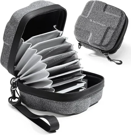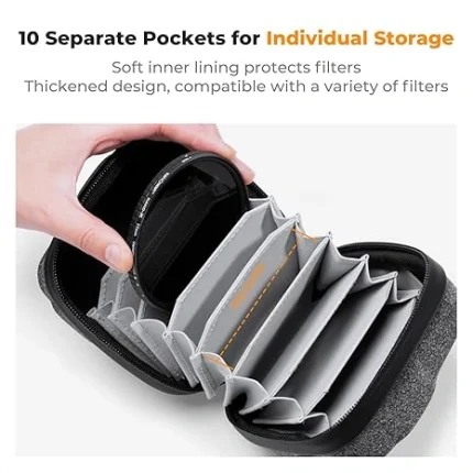 K&F CONCEPT 10 in 1 Lens Filter Case, Hard Shell Camera Filter Pouch Up to 95mm with Hand Strap
