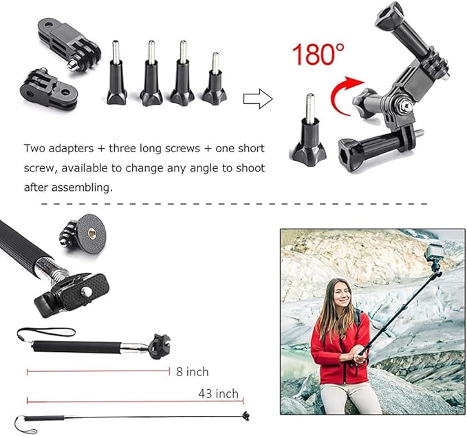 - 【SHOOT FROM EVERY ANGLE】Thanks to 19 versatile accessories including straps, mounts, and grips that let you switch perspectives in seconds.