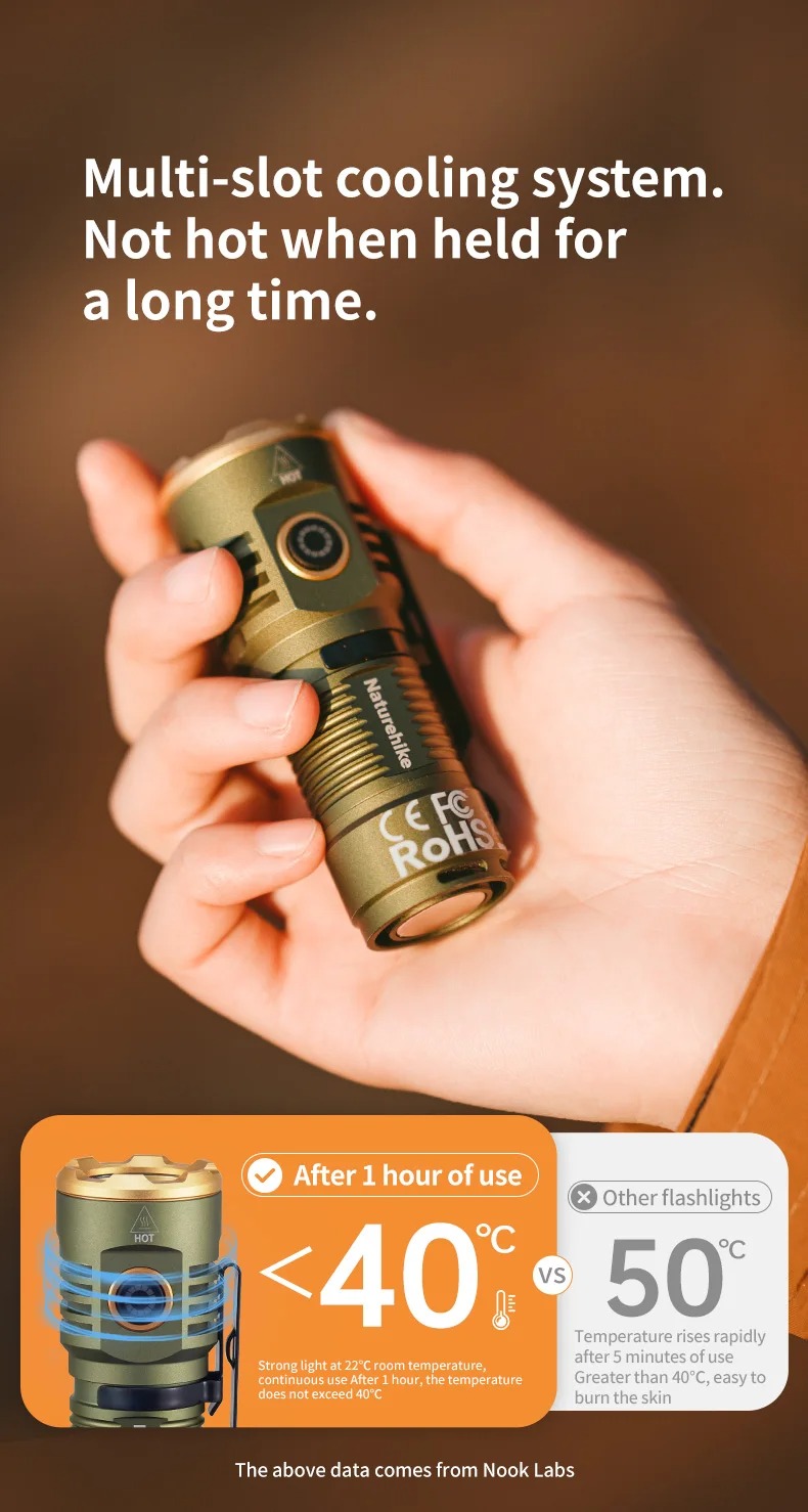 Illuminate your outdoor adventures with the Naturehike Outdoor Glare Flashlight, crafted for reliability and performance. this tactical flashlight boasts a lamp luminous flux ranging from 600 to 2800 lumens, ensuring powerful brightness in any setting. With a lighting period exceeding 12 hours and an IP Rating of IP44, it’s built to withstand rugged conditions. Constructed from durable aluminium alloy, it’s both lightweight and sturdy. Powered by a rechargeable battery, it offers eco-friendly convenience. Ideal for camping, its LED light source and dimmer support provide versatile illumination. Trust Naturehike for your outdoor lighting