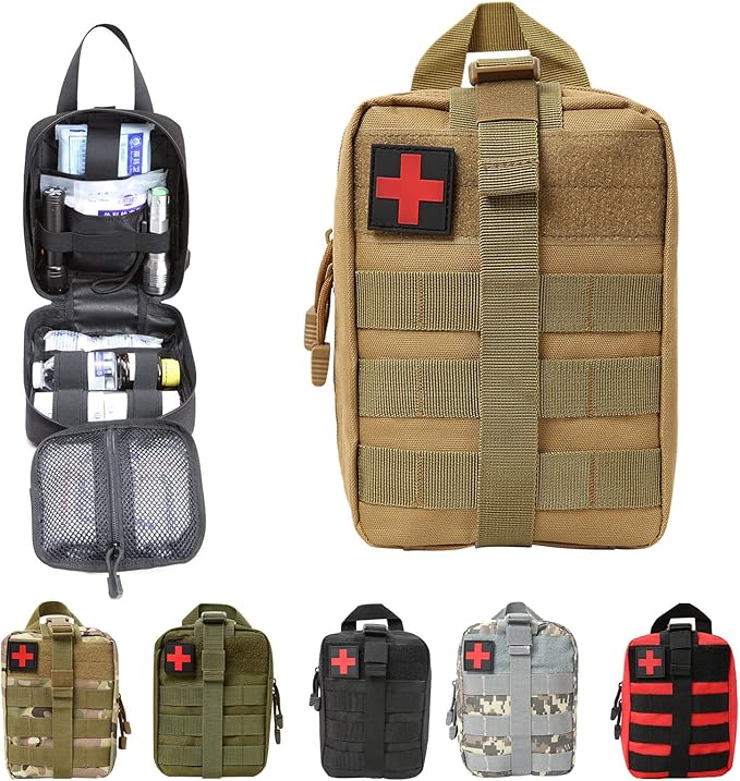 - · The molle compatible system on these first aid kits integrates easily on your tactical backpack, belt, bike, vehicle seat and even motorcycles.