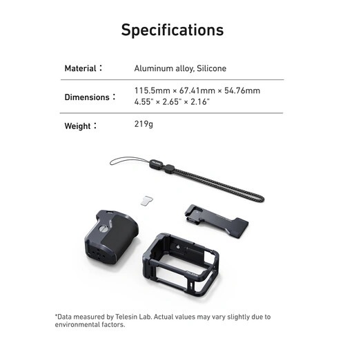 - 【Included Ultra-Lightweight Cage】Made of aluminum alloy material, the TELESIN OA 6 metal cage is crafted with precision using upgraded aluminum alloy CNC injection molding, offering effortless portability and ease of installation.