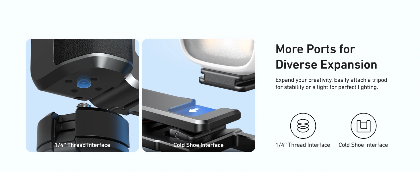 - 【Machined-to-Fit Aesthetic Rugged Durability】Engineered exclusively for the Action 6, this custom cage and grip set is CNC-machined from 6-series aerospace-grade aluminum. Every opening is precisely aligned with real-device measurements, ensuring full compatibility with the camera’s native buttons and ports.