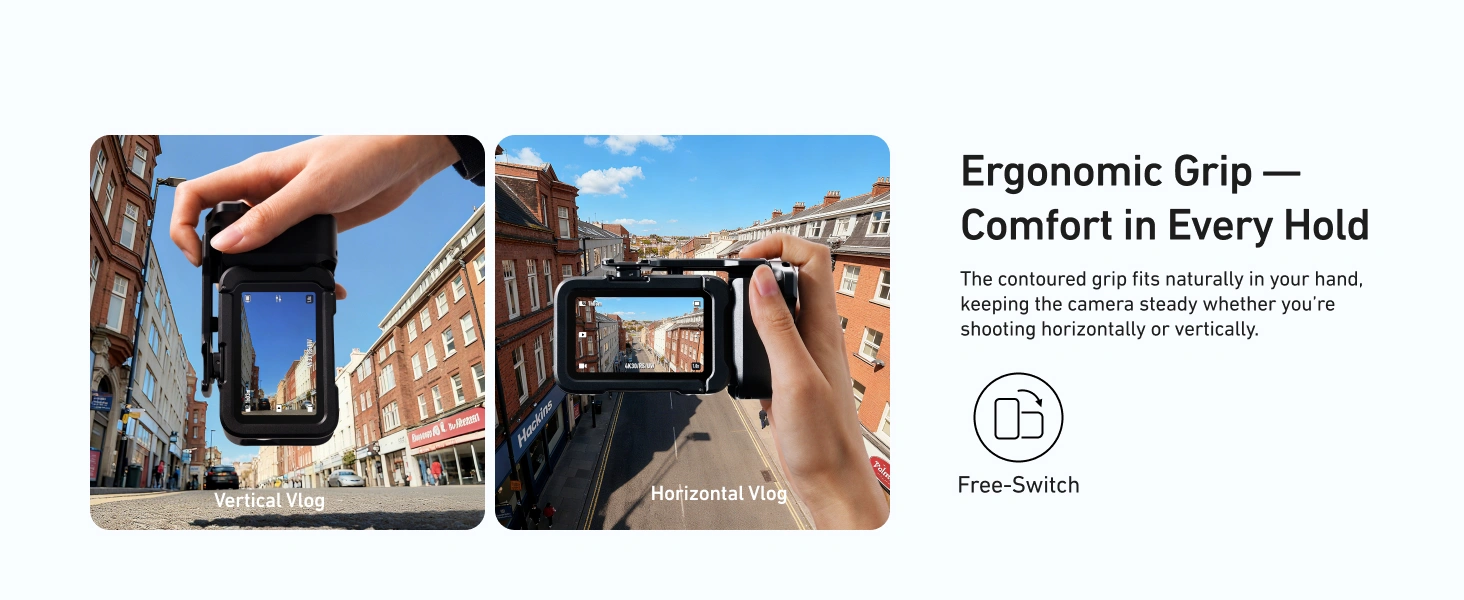 - 【User-Centric Comfortable Ergonomic Grip】The camera StreetGrip features a mid-finger groove inspired by vintage cameras and fits the palm’s curve naturally. Eco-leather wrapping reduces long-hold fatigue. It delivers pro-level handling with the lightweight ease of a CCD.