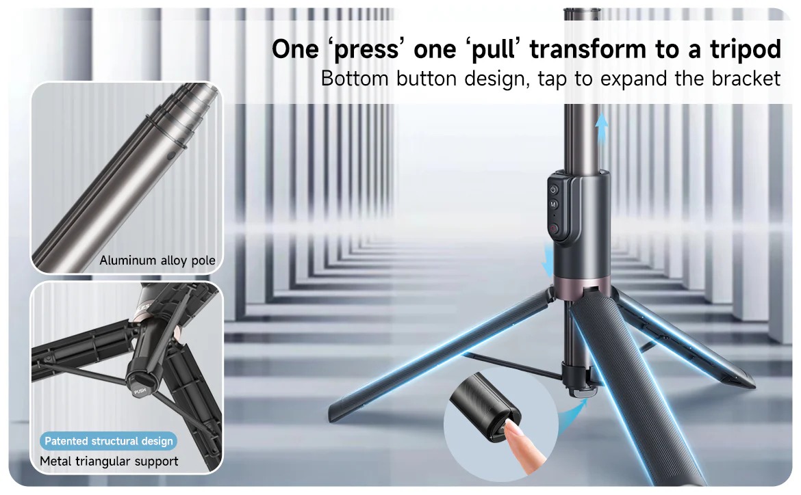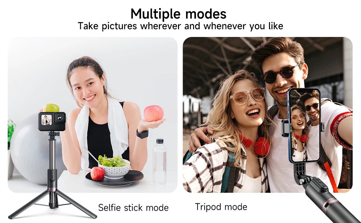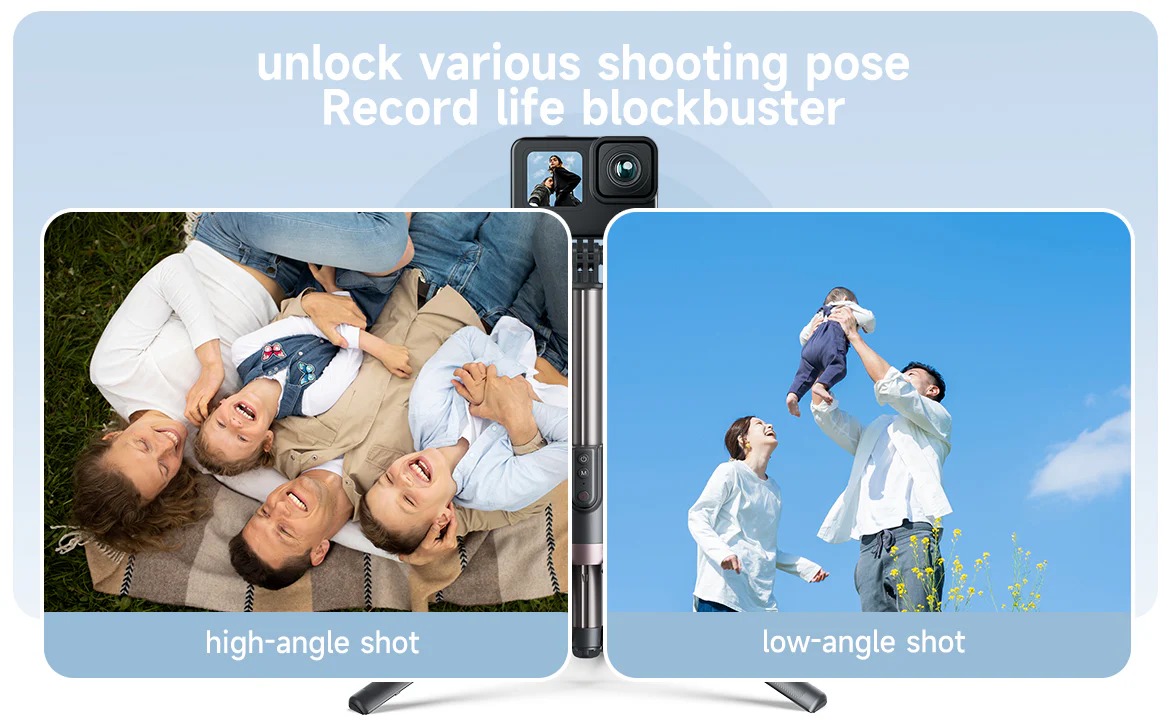 TELESIN Multifunctional Foldable Tripod Selfie Stick Mount for Action Cameras