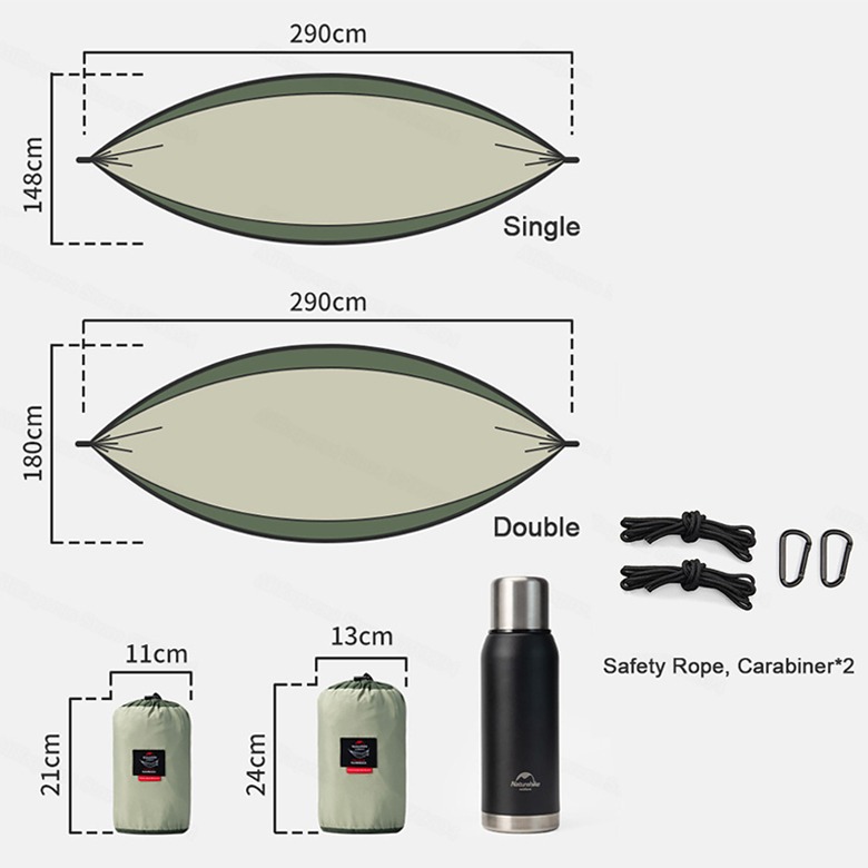 Size: 290x148cm(1 Person) / 290x180cm(2 Person)